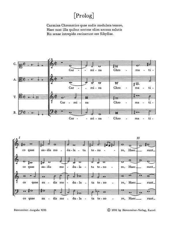 Schlötter, Reinhol, ed Motetten-Zyklus auf Sprüche der Sibyllen Prolog: Carmina Chromatico quae audis modulata tenore... Sibylla Persica: Virgine matre satus Sibylla Libyca: Ecce dies venient Sibylla Delphica: Non tarde veniet Sibylla Cimmeria: In teneris annis Sibylla Samia: Ecce dies, nigras quae tollet Sibylla Cumana:Iam mea certa manent Sibylla Hellespontica: Dum meditor quondam vidi Sibylla Phrygia: Ipsa deum vidi summum Sibylla Europaea: Virginis aeternum veniet Sibylla Tiburtina: Verax ipse deus dedit haec Sibylla Erythraea: Cerno dei natum Sibylla Agrippa: Summus erit sub carne satus Vorwort Einleitung Kritischer Bericht Texte 11 Faksimiles