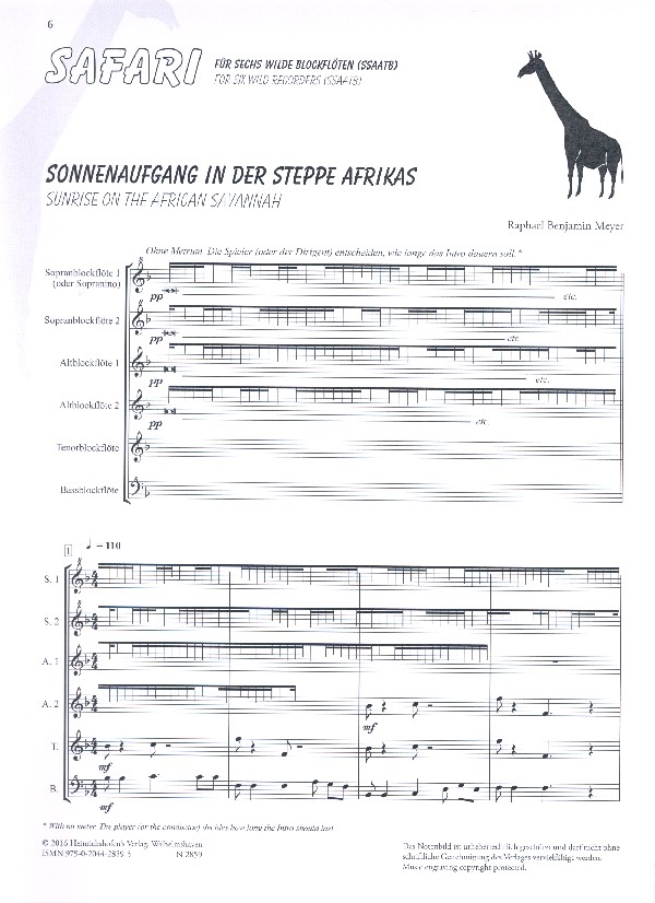für 6 wilde Blockflöten Sonnenaufgang in der Steppe Afrikas Vogelschwarm am Wasserloch Gazellen auf der Flucht Ein Löwe auf Mittagsspaziergang Durchmarsch der Elefantenherde