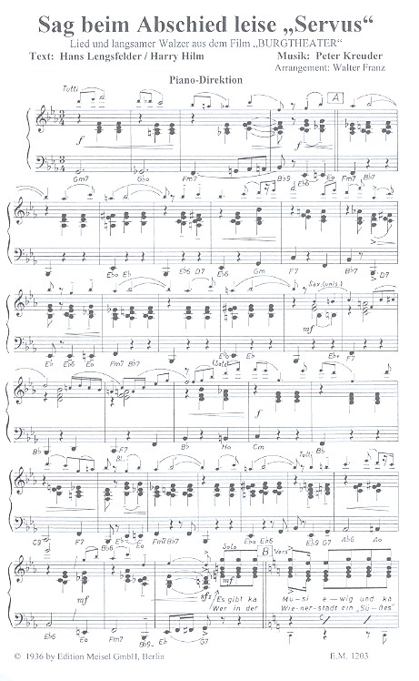 Lied und langsamer Walzer aus dem Film 'Burgtheater' Foxtrot aus dem Film 'Weisse Sklaven'