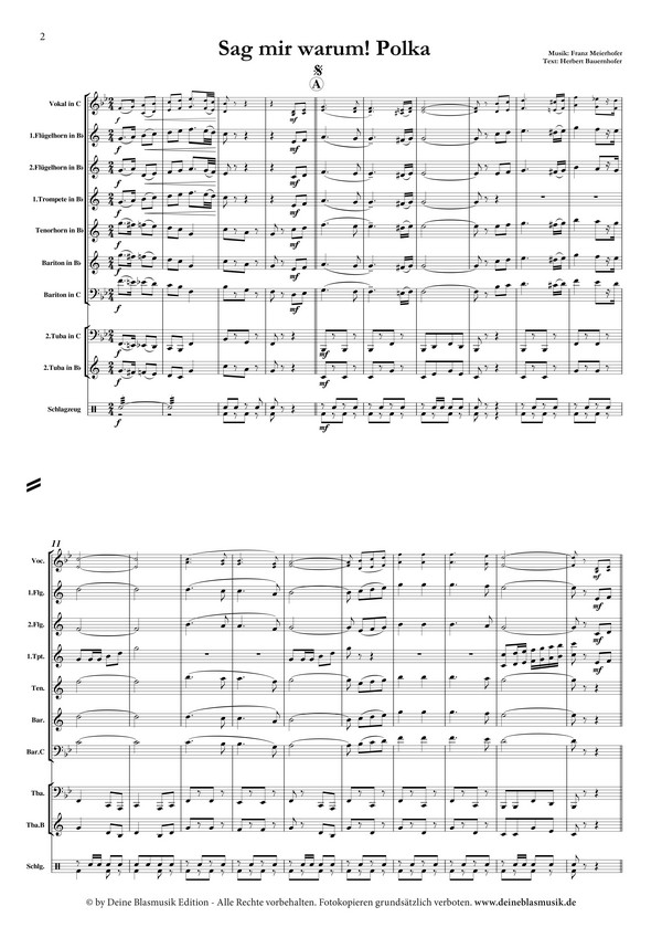 'Sag mir warum!' fragen Franz Meierhofer und Herbert Bauernhofer in ihrem blasmusikalischen Werk - nicht ohne ein Augenzwinkern. Denn wenn die Dame des Herzens auf die Schwester des Liebsten eifersüchtig wird, kann das nur humorvoll verarbeitet werden.