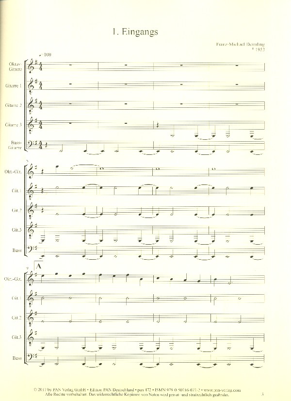 | Untertitel: | für 5 Gitarren (Ensemble) Partitur und Stimmen |