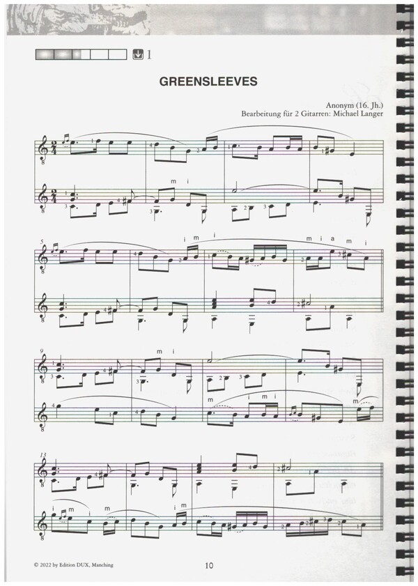 | Untertitel: | für 2 Gitarren Partitur (Spiralbindung) |