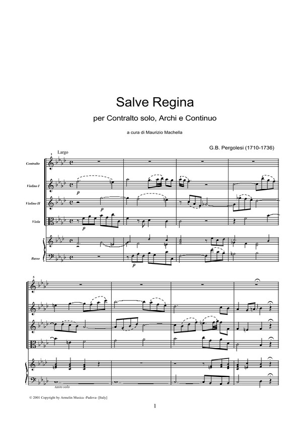 | Untertitel: | per contralto, archi e bc partitura e parti |
