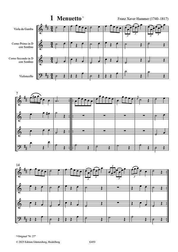 14 Stücke für Viola da Gamba, 2 Hörner und Violoncello 2 Stücke für Viola da Gamba, Violine und Violoncello
