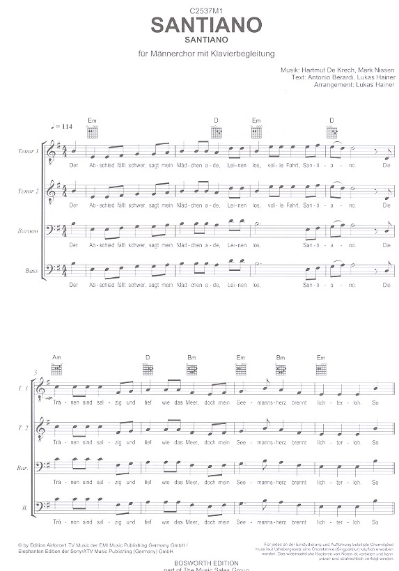 Nissen, Mark, Koautor Hainer, Lukas, Text Berardi, Antonio, Text Hainer, Lukas, arr.