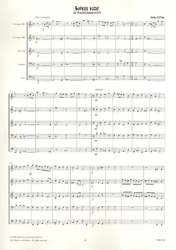 | Untertitel: | 2 Trompeten, Horn, Posaune und Tuba Partitur und Stimmen |