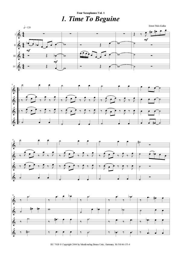 | Untertitel: | for 4 saxophones (AATT) score and parts |