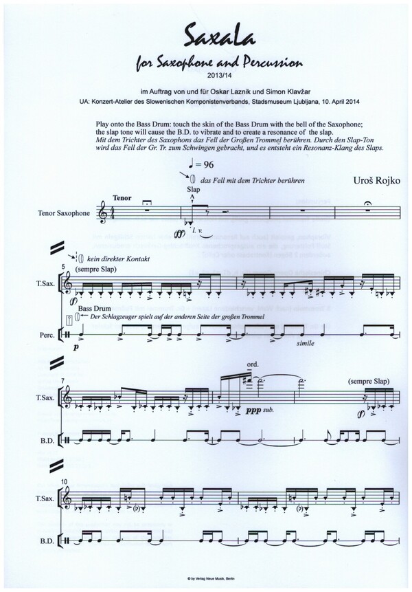 | Untertitel: | für Saxophon (A/T) und Percussion Partitur und Stimmen |