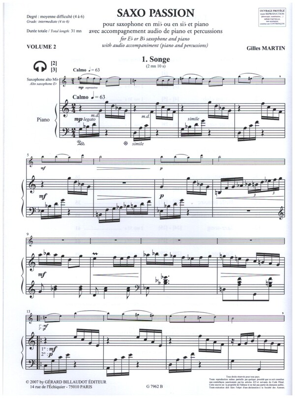 | Untertitel: | pour saxophone en mib ou sib et piano |