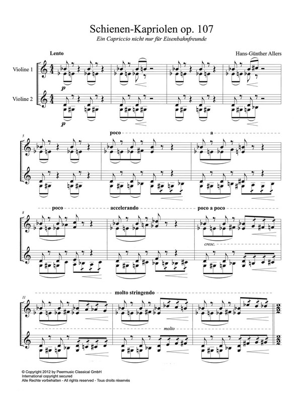 Music for the Twiolins Dingler, Marie-Luise und Christoph, ed Crossover Composition Award 2012 Capricious Rails