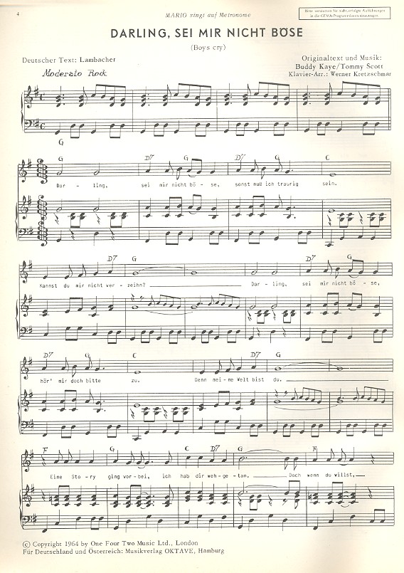 Patachou Darling sei mir nicht böse Boys cry Old Surehand Melodie Unter Geiern Kinder stimmt doch dies Klavier Das wär wunderbar Efter skoletid Tango Bettina