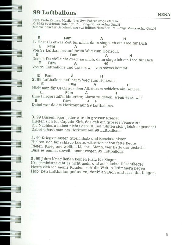 Willizil, Franz-Martin, ed 203 deutsche Kultlieder mit allen Texten und Akkorden 99 Luftballons - NENA Aber am Abend da spielt der Zigeuner - Cindy & Bert Aber bitte mit Sahne - Udo Jürgens Akropolis Adieu - Mireille Mathieu Bianca - Freddy Breck Bronze, Silber und Gold - Wolfgang Petry Bye, bye my love - Bläck Fööss Cowboy und Indiander - Olaf Henning Das alte Haus von Rocky Docky - Bruce Low Das hab' ich in Paris gelernt - Chris Howland Das Lied von Manuel - Caterina Valente Der Himmel brennt - Wolfgang Petry Dich zu lieben - Roland Kaiser Die Hände zum Himmel - Kolibris Ein Bett im Kornfeld - Jürgen Drews Einmal am Rhein - Willi Ostermann Er hat ein knallrotes Gummiboot - Wencke Myhre Es fährt ein Zug nach Nirgendwo - Christian Anders Fiesta Mexicana - Rex Gildo Ganz in Weiß - Roy Black Griechischer Wein - Udo Jürgens Ich bau dir ein Schloss - Jürgen Drews Immer wieder sonntags - Cindy u. Bert Kreuzberger Nächte sind lang - Gebrüder Blattschuss Kriminaltango - Hazy Osterwald Sextett Lady Sunshine und Mister Moon - Conny Froboess Rote Lippen soll man küssen - Cliff Richard Tanze Samba mit mir - Tony Holiday Ti Amo - Howard Carpendale Verlieben Verloren Vergessen Verzeihæn - Wolfgang Petry und viele, viele mehr...