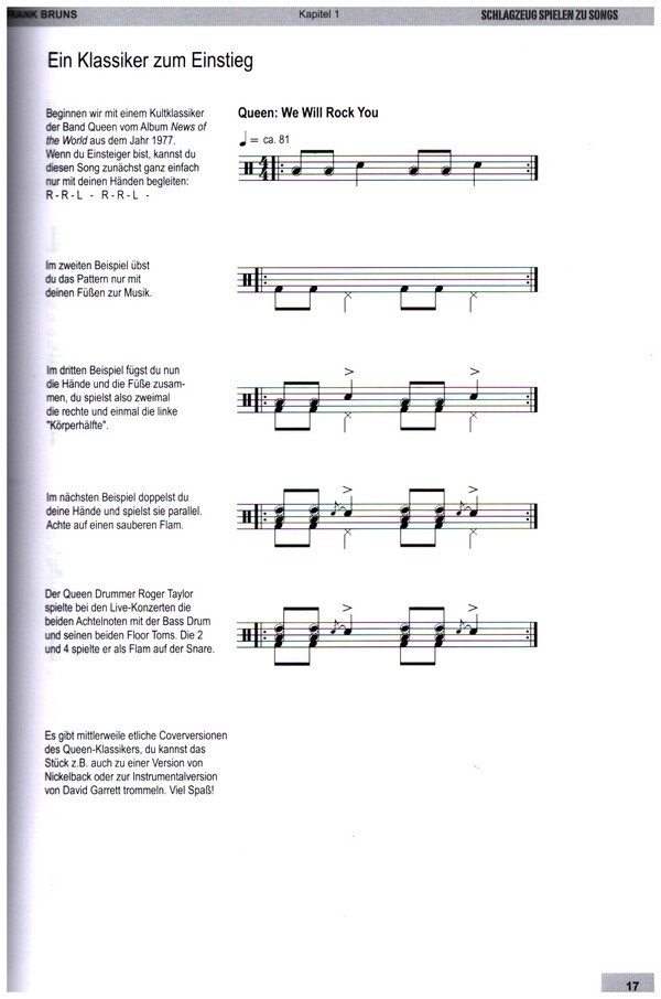 Ein Praxisbuch für Einsteiger und Fortgeschrittene über Drumming in Rock und Pop Schlagzeug spielen zu Songs bietet einen etwas anderen Weg als die meisten Lehrbücher. Der Zusammenhang zwischen der Musik / dem Song und dem Instrument wird selten so deutlich und intensiv bearbeitet wie hier. Bei aller Technik, Koordination und Independence: im Kern geht es beim Trommeln immer um Musik und um Gefühle. Schlagzeug spielen zu Songs ist ein ergänzendes Lehrbuch für den Schlagzeugunterricht verbindet Übungen mit Songs aus Rock & Pop motiviert dich, Musik zu hören motiviert dich, Songs zu begleiten richtet sich an Einsteiger und Fortgeschrittene ist mit Vorkenntnissen auch zum Selbststudium geeignet enthält mehr als 200 Grooves aus Rock & Pop enthält mehr als 200 Übungen enthält viele Hintergrundinformationen zu den Songbeispielen