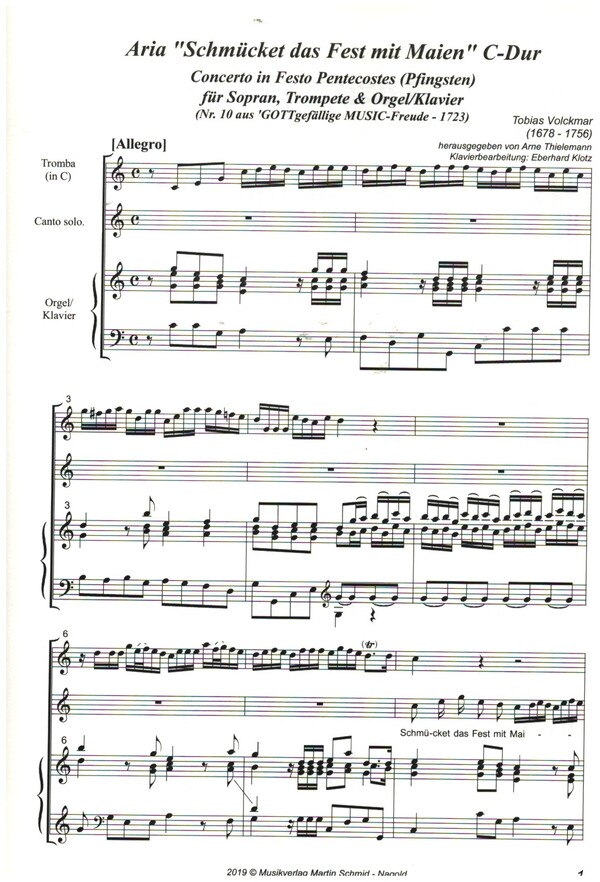 Tobias Volkmar Werke Kantaten con Tromba Band 5a (aus Gottgefällige Music-Freude 1723) Thielemann, Arne, ed Concerto in Festo Pentecostes (Pfingsten) Kantate C-Dur