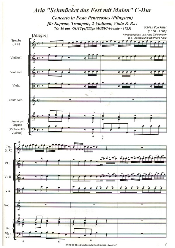| Untertitel: | für Sopran, Trompete, 2 Violinen, Viola und Bc Partitur und Stimmen (Soli-1-1-1-1-Bc) (Bc ausgesetzt) |