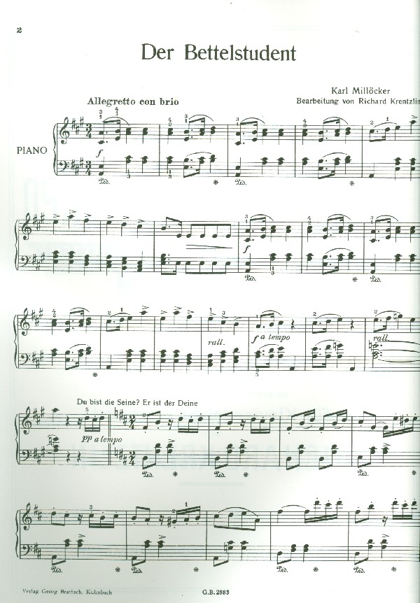Krentzlin, Richard, arr. Der Bettelstudent (Millöcker) Die Fledermaus (Hohann Strauss) Der Obersteiger (Zeller) Der Vogelhändler (Zeller) Der Zigeunerbaron (Johann Strauss) Schubert Franzl in Wien