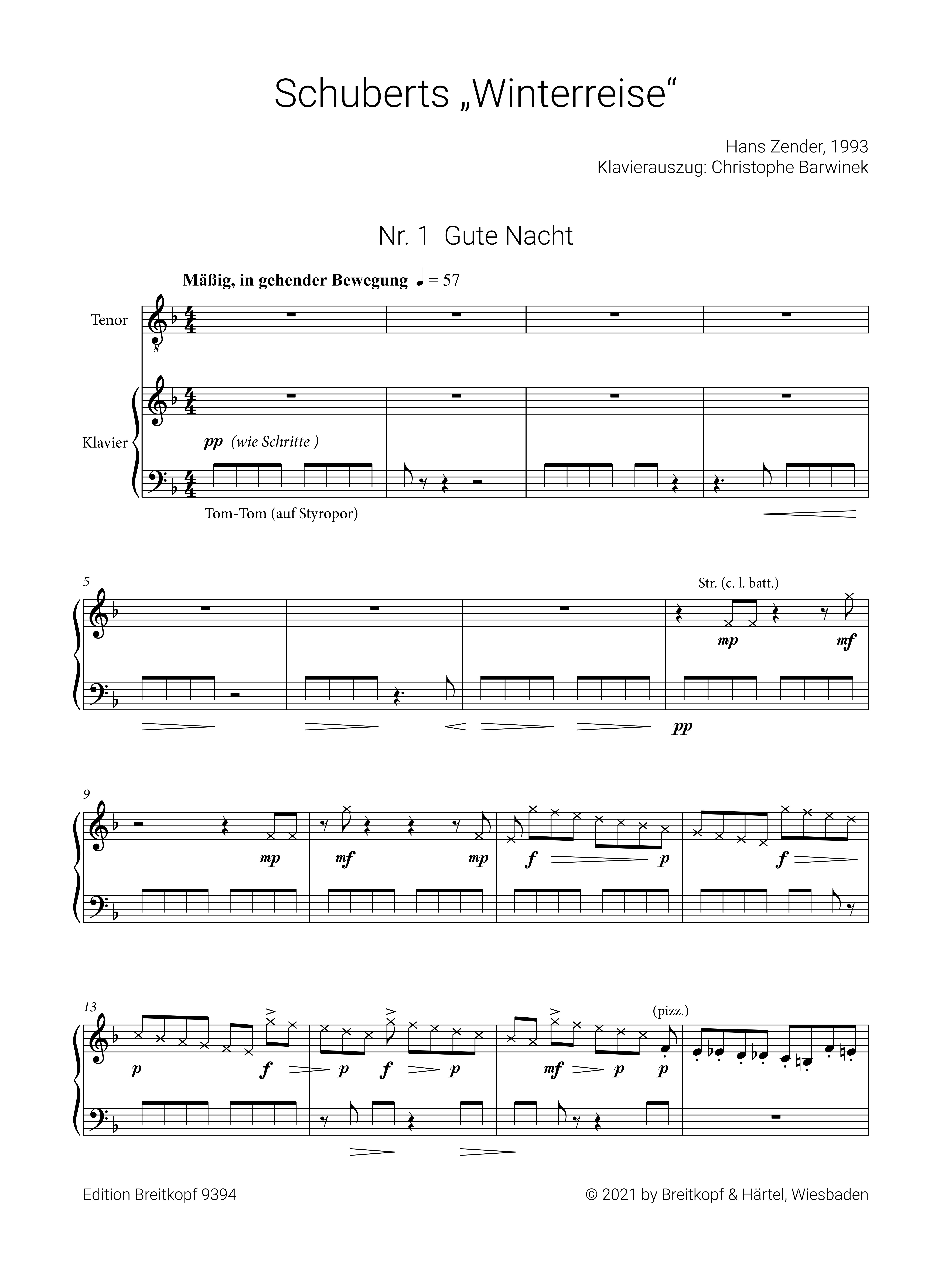 Eine komponierte Interpretation 1. Gute Nacht 2. Die Wetterfahne 3. Gefrorne Tränen 4. Erstarrung 5. Der Lindenbaum 6. Wasserflut 7. Auf dem Flusse 8. Rückblick 9. Irrlicht 10. Rast 11. Frühlingstraum 12. Einsamkeit 13. Die Post 14. Der greise Kopf 15. Die Krähe 16. Letzte Hoffnung 17. Im Dorfe 18. Der stürmische Morgen 19. Täuschung 20. Der Wegweiser 21. Das Wirtshaus 22. Mut! 23. Die Nebensonnen 24. Der Leiermann
