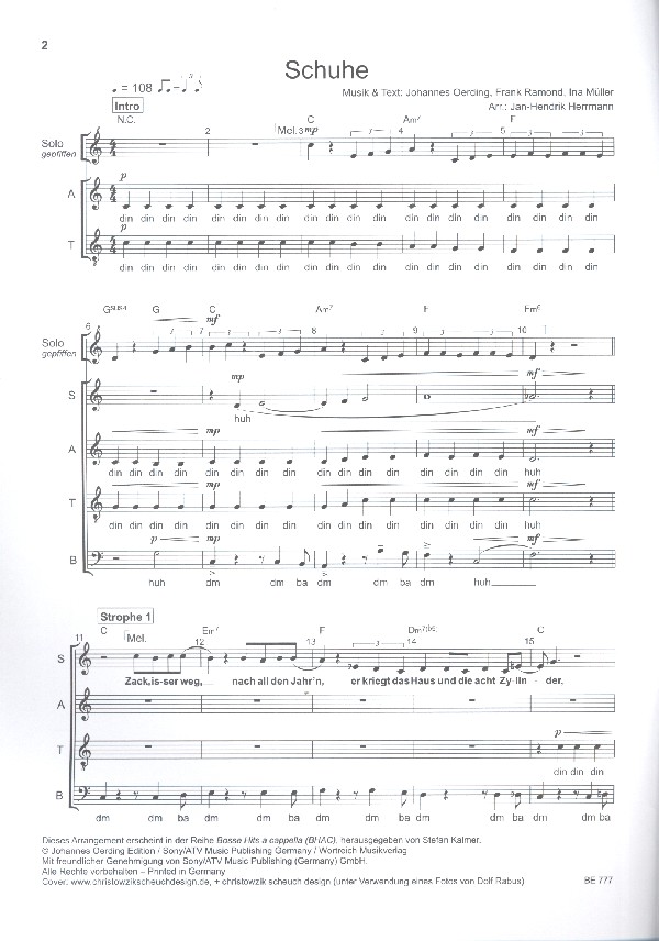 Bosse Hits a cappella Kalmer, Stefan, ed Herrmann, Jan-Hendrik, arr. Ina Müller, Interpretin