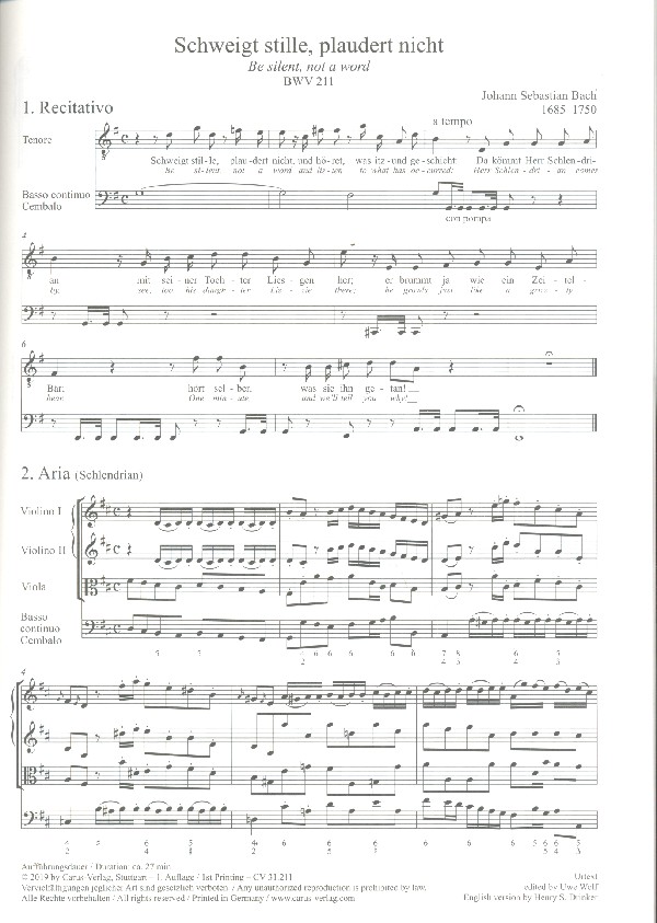 | Untertitel: | Kantate Nr.211 BWV211 Partitur (en/dt) |