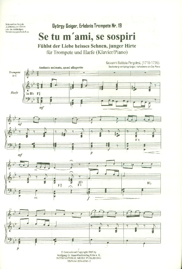 | Untertitel: | für Trompete und Harfe (Klavier) |