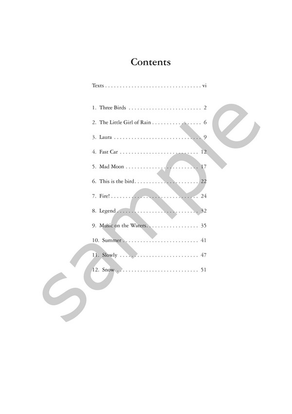 Middleton, Alasdair, lyrics Three Birds The Little Girl of Rain Laura Fast Car Mad Moon This is the bird Fire! Legend Music on the Waters Summer Slowly Snow