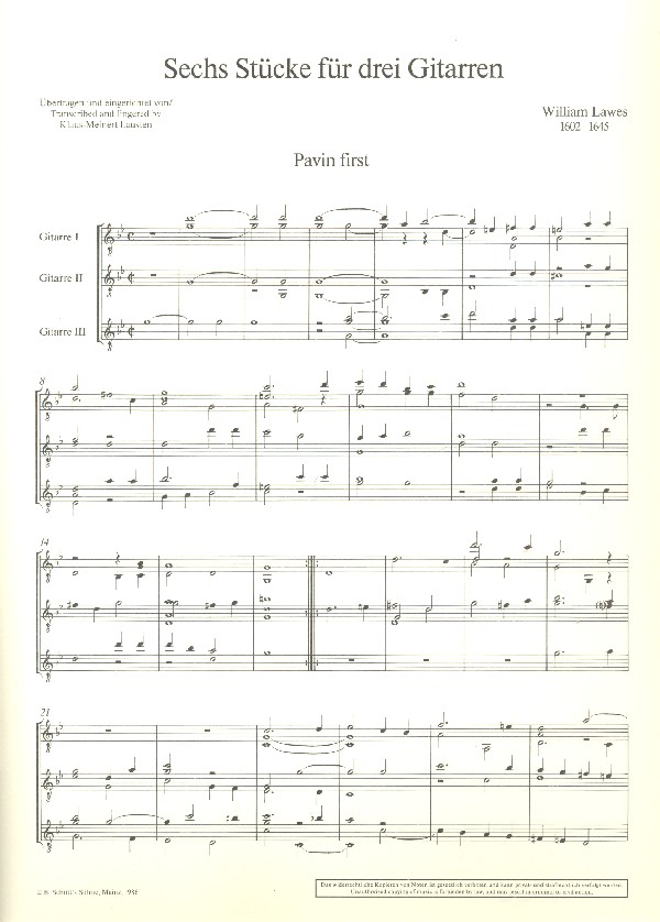 | Untertitel: | für 3 Gitarren Partitur und Stimmen |