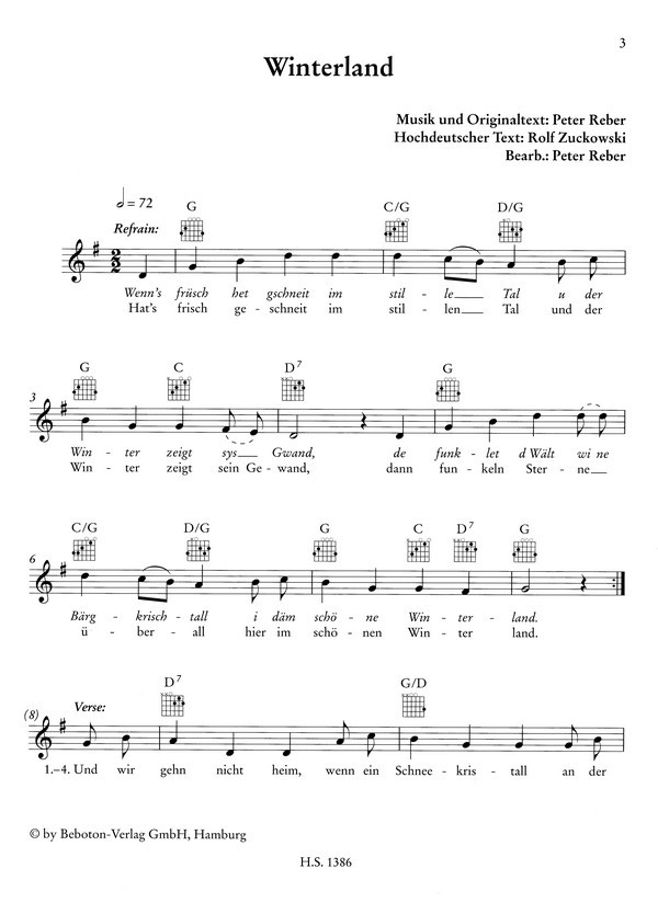 Reber, Peter, Koautor Rolf Zuckowski und seine Schweizer Freunde Reber, Peter, Koautor Alle Jahre wieder Der Stern Die kleinste Welt Es ist für uns eine Zeit angekommen Freu dich Geh mein Kind Kommet ihr Hirten Kommt wir woll'n ein Licht anzünden Vier Takte vor Weihnachten Vor vielen hundert Jahren Weihnachten (Markt und Straße stehn verlassen) Weiße Flocken Winterland Winterzeit Weihnachtszeit