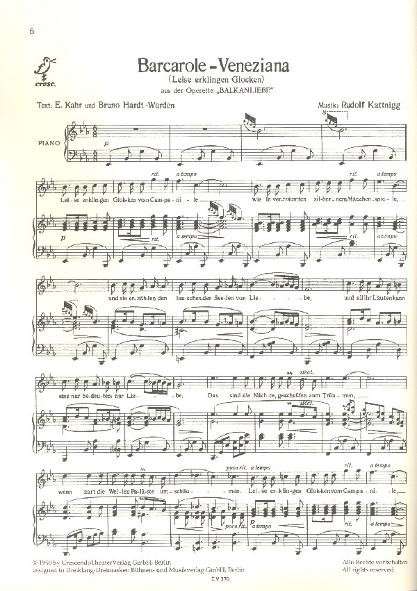 Barcarole Veneziana Heimat mit der Seele grüße ich dich Juble mein Herz Du warst der gute Stern in meinem Leben Eine Kaiserin darf keine Liebe kennen Aus des Meeres blauen Wogen Du bist der Traum Es schwingt sich empor mein stolzes Herz Ein traumverlorener Blick Ständchen Hell soll mein Lied Wann schlägt für mich die große Stunde Lasst uns die Stunde genießen Capri bei Nacht Sag mir Auf Wiedersehen Strahlendes Granada (Andalusische Nächte) Liebe immer nur Liebe Ein kleines Rendezvous Sag mir nur das eine Wort