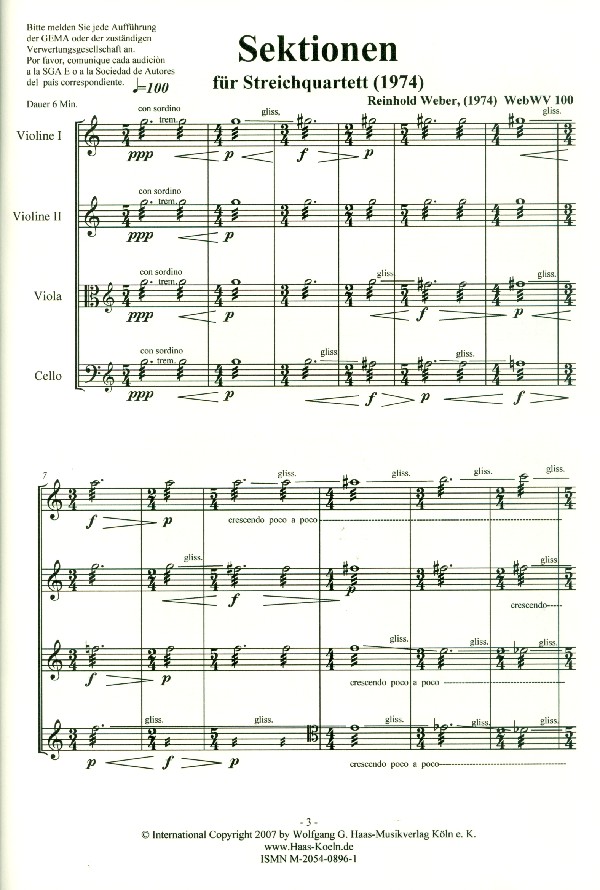 Sektionen WebWV100 für Streichquartett