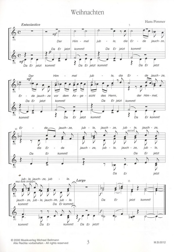 | Untertitel: | für 3-4 gleiche Stimmen Partitur |