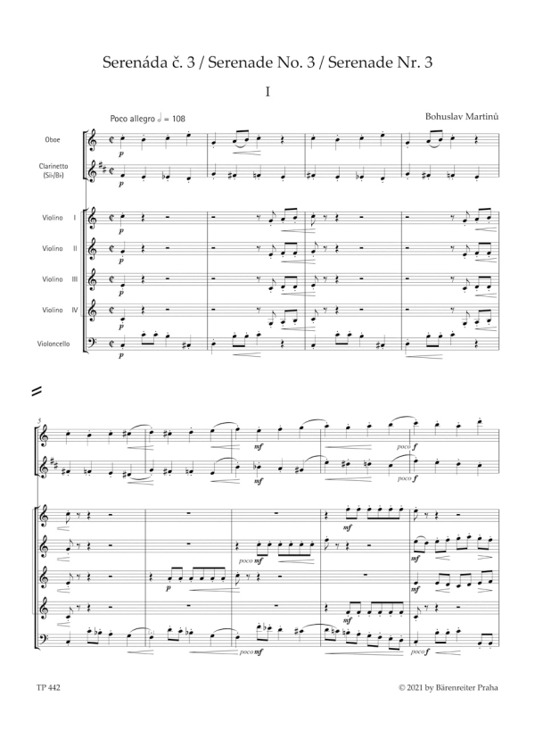 Ersetzt H365 Zichová, Jitka, ed Obwohl die Studienpartitur der Serenaden Nr. 1 und 3 noch zu Lebzeiten des Komponisten herausgegeben wurde, war er an der Vorbereitung dieser Edition nicht beteiligt, und ohne seine Beteiligung ist 1954 auch das Aufführungsmaterial erschienen. Aus diesem Grund wurde als Hauptquelle für die vorliegende Edition die autographe Partitur gewählt.
