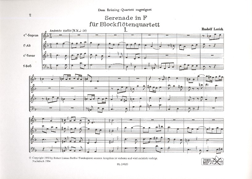 | Untertitel: | Für Blockflöten-Quartett Partitur |