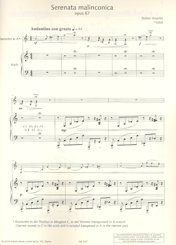 | Untertitel: | für Klarinette in A und Harfe Partitur und Stimme |