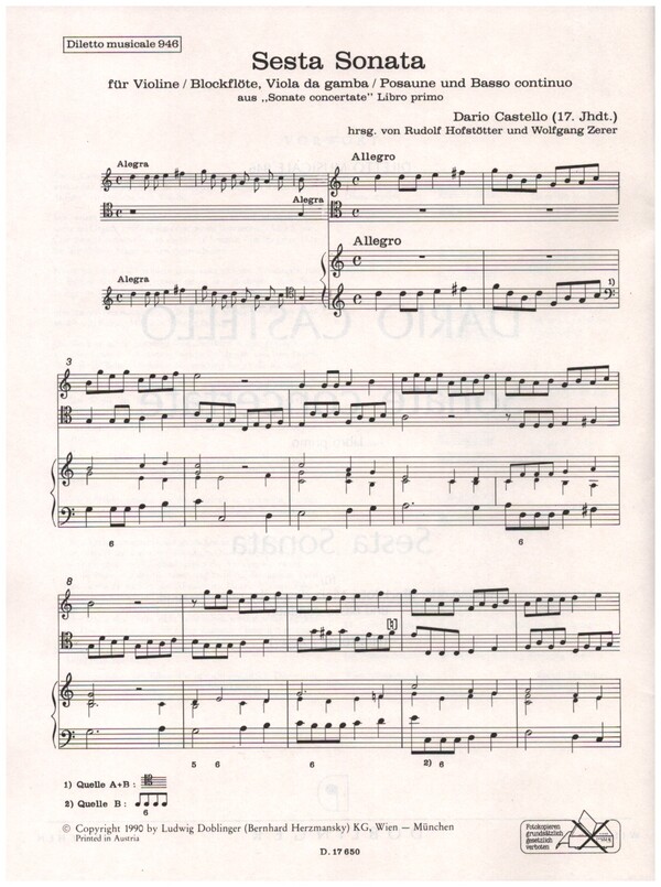 Sonate concertate libro primo Hofstoetter, Rudolf, ed Zerer, Wolfgang, ed