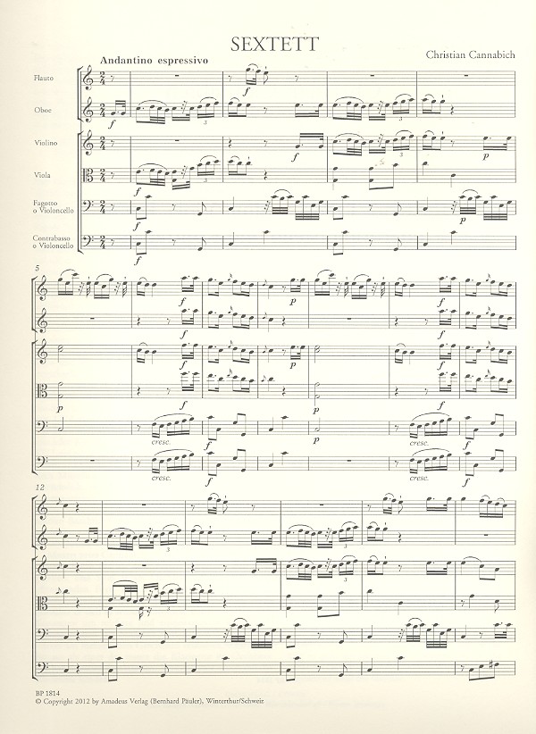 Sextett C-Dur für Flöte, Oboe, Violine, Viola,