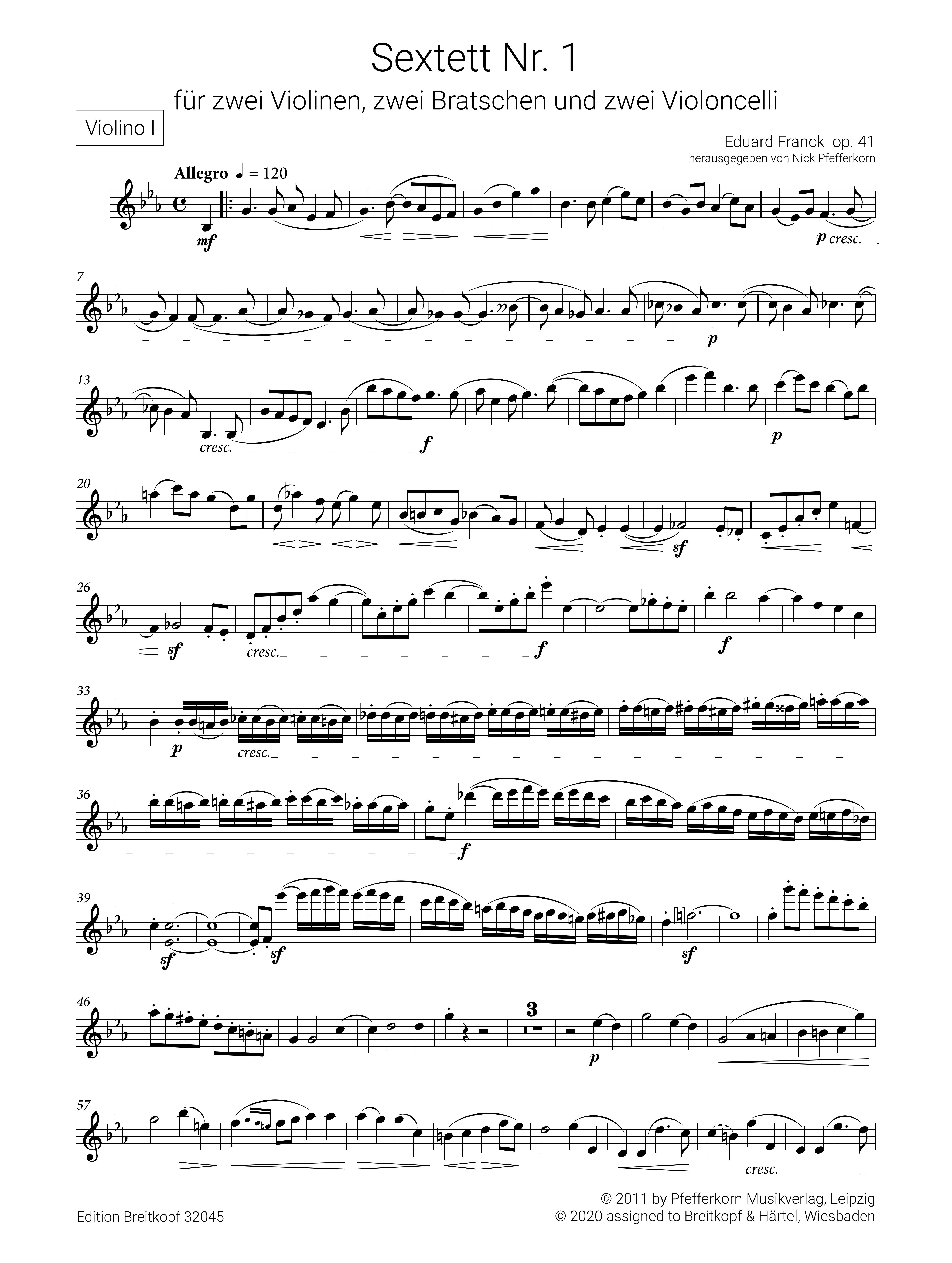 Pfefferkorn, Nick, ed Das Sextett Nr. 1 op. 41 gehört zu den Werken op. 41-47, die 1882/84 in rascher Folge gedruckt erschienen, deren Entstehungszeit aber erheblich früher liegen dürfte. Es ist eine unbedingte, wichtige Repertoireerweiterung für die Sextett-Besetzung und gesellt sich zu den beiden Werken dieser Gattung von Johannes Brahms.