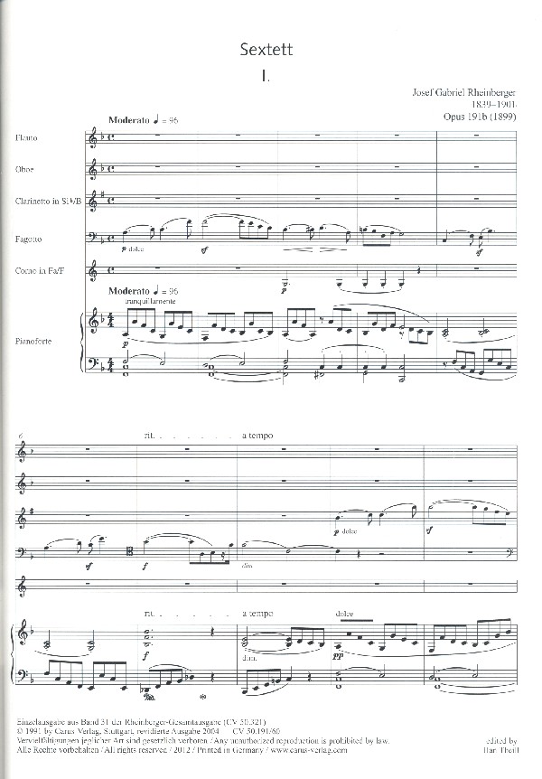 | Untertitel: | für Klavier, Flöte, Oboe, Klarinette, Horn und Fagott Partitur (=Klavier) und Stimmen |