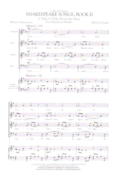 Take o take those Lips away Tell me where is fancy Bred Under the Greenwood Tree Come away come away Death