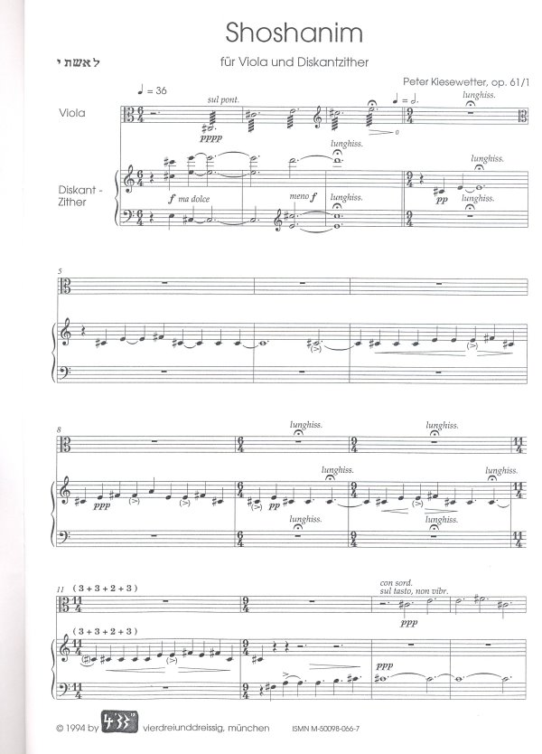 Shoshanim für Viola und Diskantzither