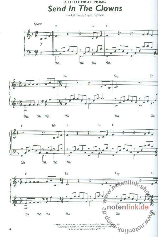 Bali ha'i Being alive Big spender Cabaret Can't help lovin' dat man Close every door Copacabana = At the copa Diamonds are a girl's best friend Don't cry for me argentinia Do-re-mi Greased lightnin' I could have danced all night I dreamed a dream I know him so well I'll never fall in love again If i were a rich man Is you is or is you ain't my baby It ain't necessarily so Love changes everything Luck be a lady Memory The music of the night No matter what Now that i've seen her Oh what a beautiful mornin' Pick a pocket or two Send in the clowns Smoke gets in your eyes Stranger in paradise Tell me it's not true Thank you for the music That'll be the day Till there was you The time warp Tomorrow You'll never walk alone