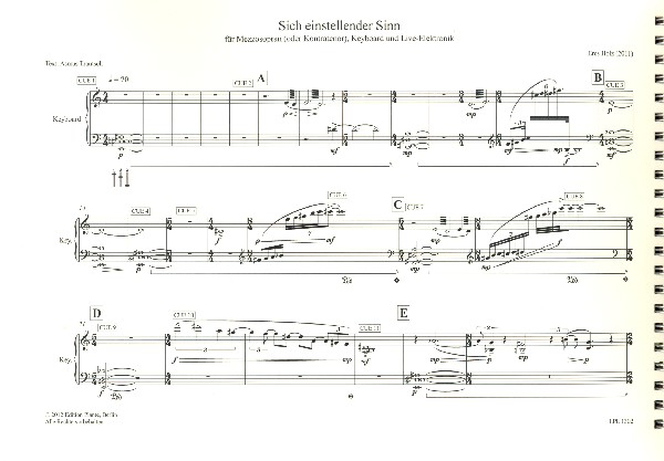 | Untertitel: | für Mezzosopran (Kontratenor), Keyboard und Live-Elektronik Partitur |