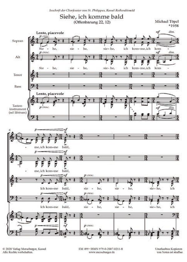| Untertitel: | für gem Chor a cappella und Tasteninstrument colla parte ad lib Partitur |