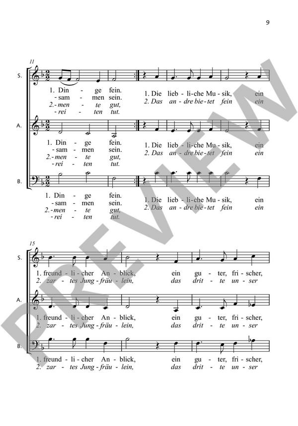 Michel-Becher, Jutta, ed Volkslieder, Kirchenlieder, Kanons und Unterhaltsames angenehmer Tonumfang Wo man singt Sing, sing together! Wir lieben sehr im Herzen Wir sind der Chor Im Märzen der Bauer Nicht lange mehr ist Winter Nun will der Lenz uns grüßen Alle Vögel sind schon da Der Winter ist vergangen Sommerfest-Song Kommt, ihr G'spielen Wer recht in Freuden wandern will Das Lieben bringt groß' Freud Mit Lieb bin ich umfangen Kein Feuer, keine Kohle All mein Gedanken Der Lindenbaum Unter den Pinien von Argentinien Leer sind die Felder Zogen einst fünf wilde Schwäne Wie lieblich schallt Wenn die wilden Winde stürmen Herbst ist da Verschneit liegt rings die ganze Welt O wie ist es kalt geworden Ach bittrer Winter Freude, schöner Götterfunken Wahre Freundschaft soll nicht wanken Die Gedanken sind frei Erwacht, ihr Schläfer drinnen Es tagt, der Sonne Morgenstrahl Kein schöner Land Der Mond ist aufgegangen Ja dan duia Hab mir geschnitzt ein Weidenpfeiflein Zum Tanze, da geht ein Mädel Als zum Wald Petruschka ging Winde wehn Blau ist der Himmel Maria durch ein Dornwald ging Ach, mein Seel, fang an zu singen Ecce Dominus veniet O Heiland, reiß die Himmel auf O du fröhliche Zu Bethlehem geboren In dulci jubilo Stille Nacht, heilige Nacht! O Haupt voll Blut und Wunden (Passion) Die ganze Welt, Herr Jesu Christ (Ostern) Heilger Geist, du Tröster mein (Pfingsten) Freu dich, du Himmelskönigin Ave Maria gratiosa Geh' aus, mein Herz und suche Freud Nun danket alle Gott Großer Gott, wir loben dich Lass mich der Liebe sein gewiss Du bist da Habt Vertrauen, fürchtet euch nicht Tut mir auf die schöne Pforte Gott ist gegenwärtig Swing Low, Sweet Chariot - Kum ba yah Dona nobis pacem Irischer Segen