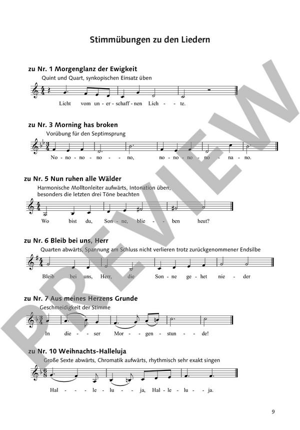 Michel-Becher, Jutta, ed Das Seniorenchorbuch mit Repertoire für den Gottesdienst Kirchenlieder und Psalmvertonungen Allein Gott in der Höh sei Ehr Alles ist an Gottes Segen Auf, auf, mein Herz, mit Freuden Aus meines Herzens Grunde Ave verum corpus Befiehl du deine Wege Bleib bei uns, Herr Can The Circle Be Unbroken Christ ist erstanden Christus, der ist mein Leben Da berühren sich Himmel und Erde Da pacem, Domine Der du die Zeit in Händen hast Der Mensch gleicht einem Hauch (aus Psalm 144) Der Tau fällt vom Himmel Die Nachtigallen Ecce panis angelorum Erhör, o Gott, mein Flehen Es ist ein Traum Folge niemals dem Rat Gelobt sei Gott im höchsten Thron Gelobt sei und gebenedeit Heaven Is A Wonderful Place Herr Christ, dein bin ich eigen Herr Jesu Christ, dich zu uns wend Herr, wer kennet deine Wege Heut ist gefahren Gottes Sohn Himmel, Erde, Luft und Meer Himmelfahrtslied Holz auf Jesu Schulter Im Gonna Sing In dir ist Freude In Your Name Ins Wasser fällt ein Stein Komm, o komm, du Geist des Lebens Kommt, Seelen, dieser Tag Lass uns in deinem Namen, Herr Leite mich (nach Psalm 4 und 5) Lieder der Hoffnung Lobe den Herren Lobet den Herren, alle, die ihn ehren Macht hoch die Tür Maria, unsre liebe Frau Morgenglanz der Ewigkeit Morning Has Broken Nun lobet Gott im hohen Thron Nun ruhen alle Wälder Regina coeli Schönster Herr Jesus Seele, dein Heiland Si iniquitates observaveris So nimm denn meine Hände Sommarpsalm Soon The Hoar Old Year Will Leave Us Tiefen Frieden Tochter Zion, freue dich Was Gott tut, das ist wohlgetan Weihnachts-Halleluja Were You There Wie groß sind deine Werke, o Herr (aus Psalm 92) Wisst ihr noch, wie es geschehen Zeige uns den Weg KANONS: Ave maris stella Blumen sind das Lächeln der Erde Der Geist weht, wo er will Es werden kommen Frieden im Herzen Gib Gott! Halleluja Halleluja, fröhlich singet Ich bin der Weinstock In der Welt habt ihr Angst- Jesus Christus gestern und heute Jubilate Deo Komm nun, weihnachtlicher Geist Lebe dein Leben! Mögest du ein Lied in deinem Herzen haben Musik der Seele Sende dein Licht Siehe, die Trauer Vergebt einander Von allen Seiten umgibst du mich Wende dein Gesicht der Sonne zu Wie laut dich auch der Tag umgibt Zu neuen Ufern