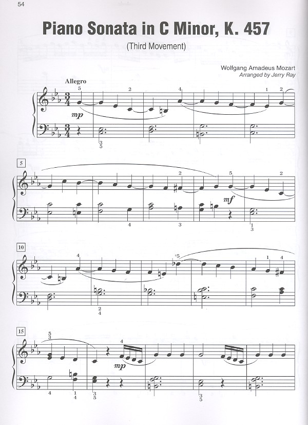 Ray, Jerry, arr. Selections from Allegro in b Flat Major Ave verum corpus Eine kleine Nachtmusik Piano Concerto in b Flat Major no.15 Piano Concerto in C Major no.21 Piano Sonata in A major Piano Sonata in C Major Piano Sonata in c Minor Sehnsucht nach dem Frühluing Ah vous dirai-je Maman Don Giovanni The Magic Flute The Marriage of Figaro Symphony in F Major no.6 Symphony in g Minor no.40 Symphony in D major no.50 Violin Sonata in C Major Violin Sonata in e Flat Major Wiegenlied