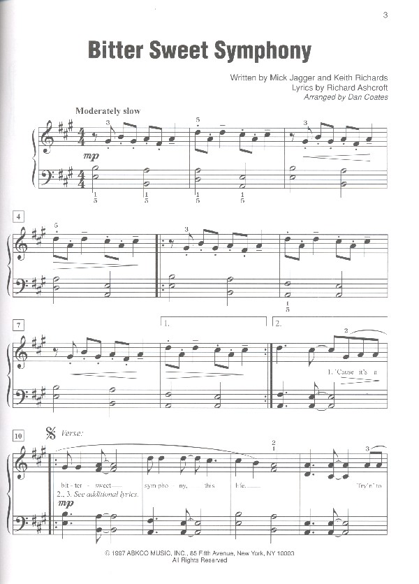Beautiful Stranger Bitter Sweet Symphony Breakfast at Tiffany's Fake Plastic Trees I don't want to miss a Thing I'd lie for You I'll be there for You Losing my Religion Love at first Sight Macarena One of Us Right Now Smooth Streets of Philadelphia Walkin' on the Sun What's the Frequency Kenneth?
