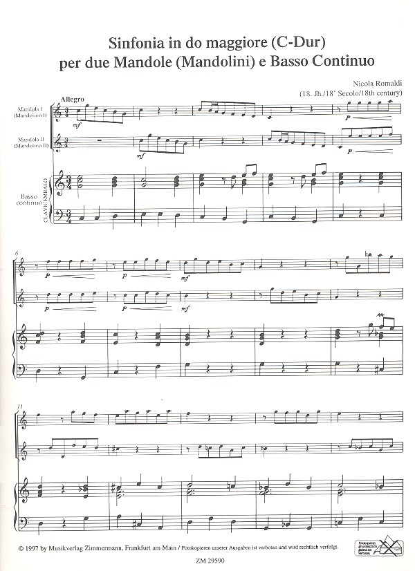 | Untertitel: | für 2 Mandolinen und bc Stimmen |