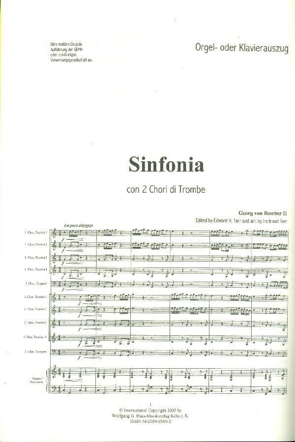 | Untertitel: | für 8 Trompeten in 2 Chören, Pauken, Streichorchester und bc Klavierauszug |