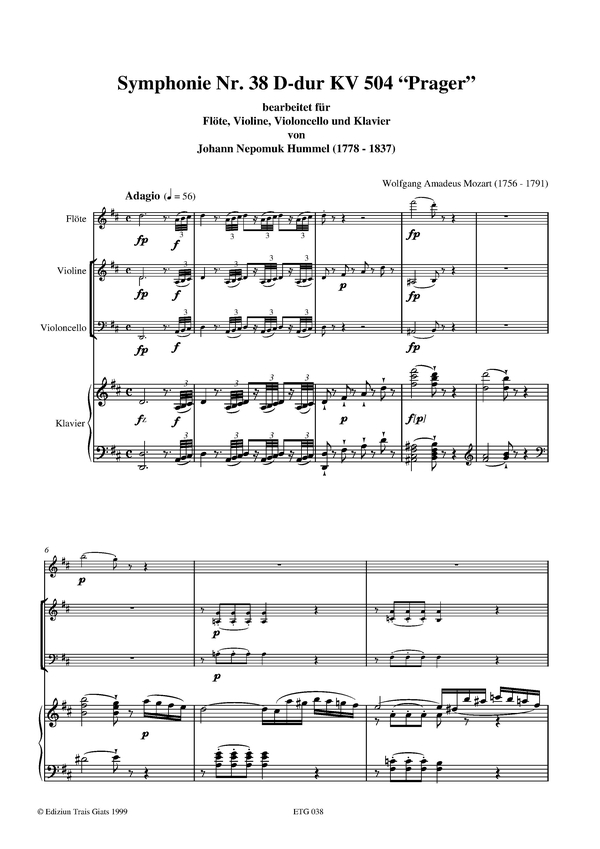 Hummel, Johann Nepomuik Bearb. KV504 Prager Sinfonie