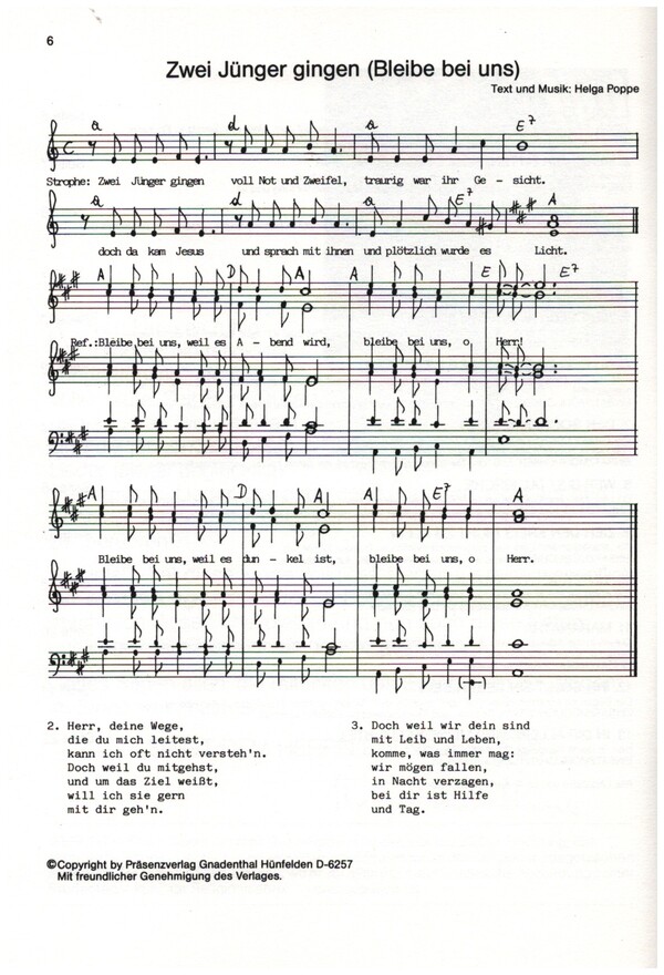 Reischl, Werner, arr. Die neuen religiösen Lieder Zwei Jünger gingen Herr wir bitten komm und segne uns Eines Tages kam einer Halleluja aus Taizé Nie tiefer als in seine Hand Du bist das Licht der Welt Der Sonnengesang Wer bist du Kirche Zieh den Kreis nicht zu klein Unter all die Sterne Maranatha Ihr sollt ein Segen sein In dir allein wird meine Seele still
